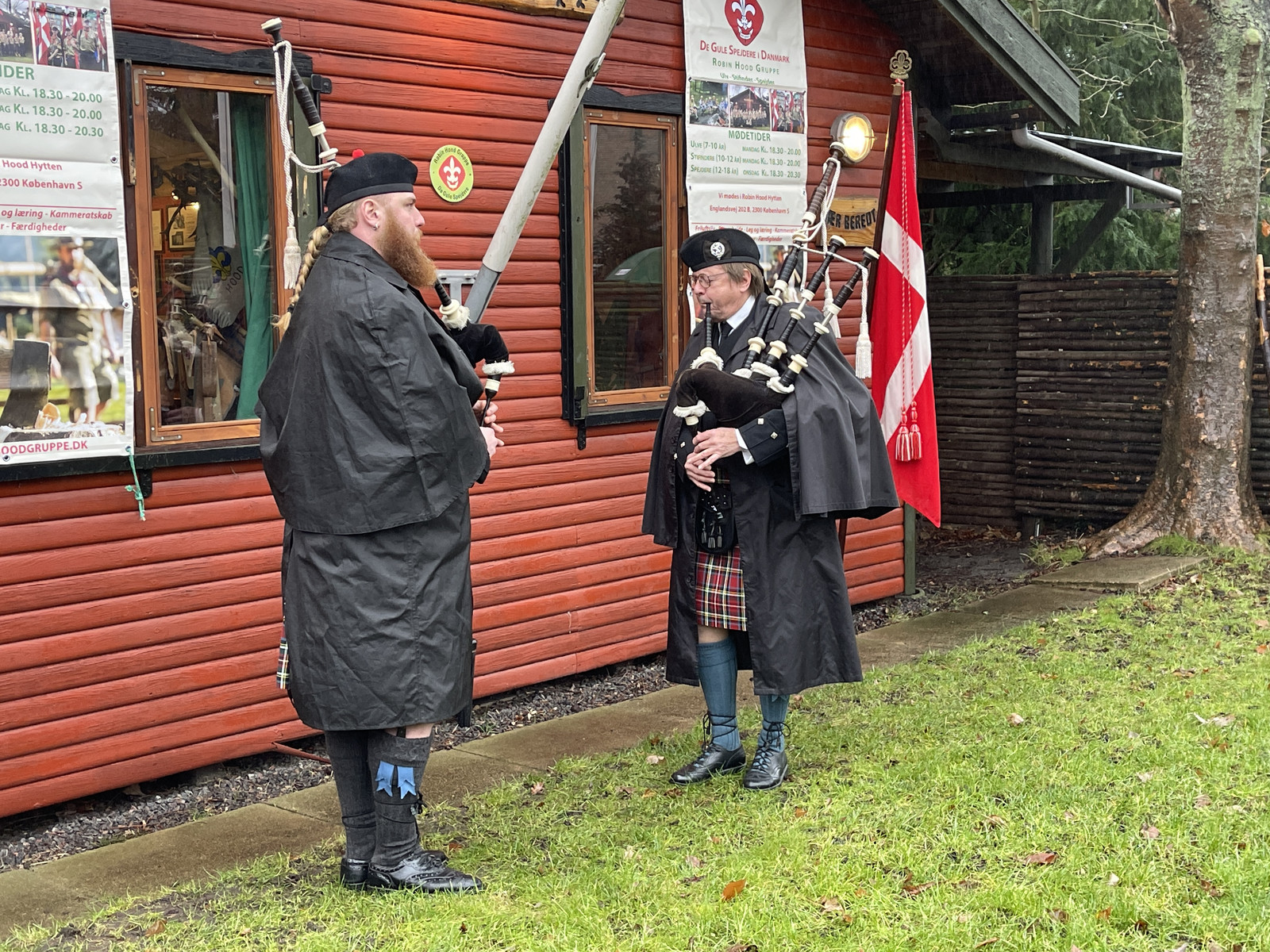 2 Pipere fra Copenhagen Caledonia Pipeband varmede op – med flot sækkepibemusik, bla. ”Mester Jacob” som kanon – Stor succes.